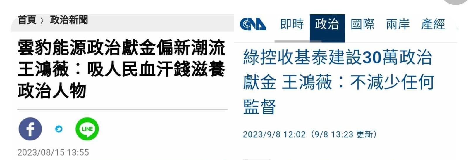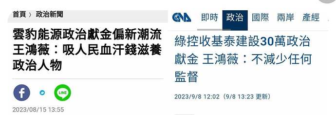 雲豹能源董事長賴勁麟被質疑掛名18家公司負責人,捐給民進黨政治獻金逾500萬元,又以「新潮流」參選人較多,民進黨立委賴瑞隆更得到100萬元政治獻金。國民黨立委王鴻薇今天痛批,台電跌倒,變成民進黨發財,吸台電的血就是吸台灣人的血,把人民的血汗錢吸乾去滋養政治人物。王鴻薇說,民進黨假發展綠電的名義,行賺飽之實,賴勁麟一人擔任19間公司的董事長,台電機年虧損4千億元,是因為採購綠電不敷成本,風力發電的購電成本一度超過7塊,太陽能一度超過4塊,以這樣的比例,台電賣一度電是虧二度、三度電,由民進黨新潮流擔...