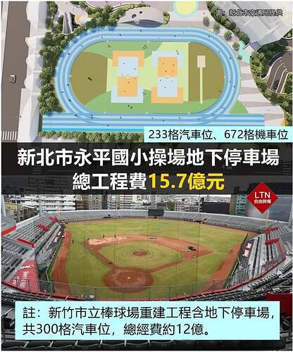 新北市永平國小地下停車場,總經費 15億7000萬元。可提供 233格汽車位、672格機車位