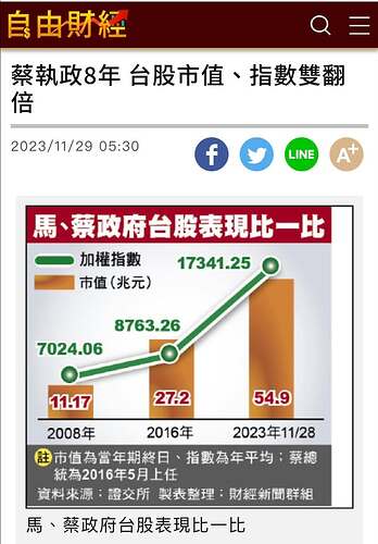蔡英文執政7年半,股市漲了一倍多!