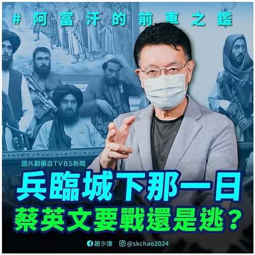 2021年8月16日的趙少康:役男只需要服四個月兵役,根本無法應付爆發全面戰爭時的國防需求