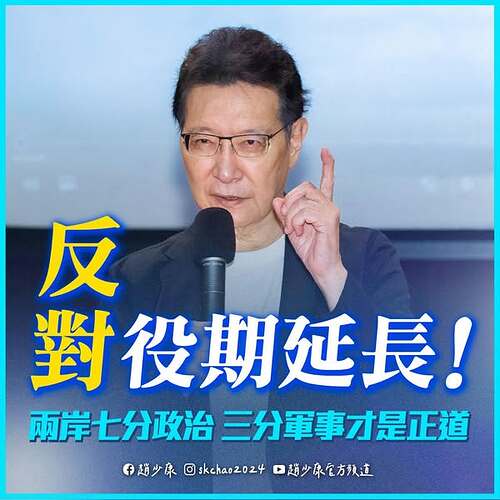 2022年12月27日的趙少康:堅決反對延長兵役到一年或更久,我們若執政一定改回來