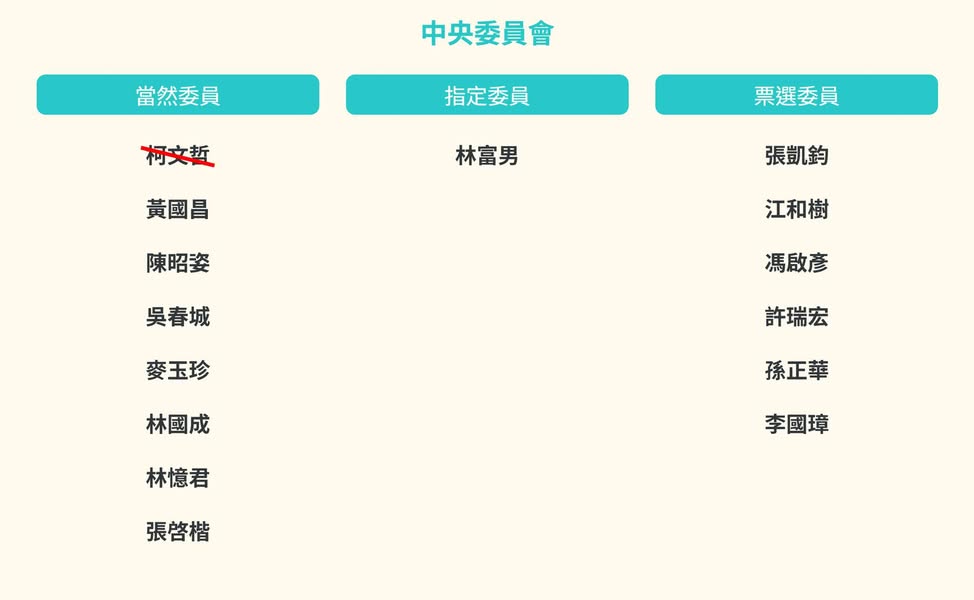 柯文哲主席因故無法執行職權,由14名中央委員互相推選一個當代理黨主席。