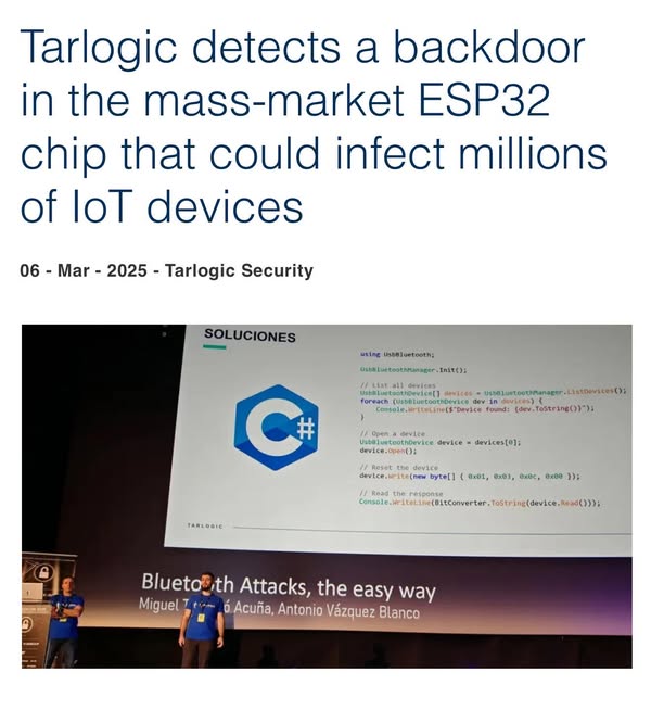 3月6日班牙馬德里舉行的 RootedCON 網路安全會議上,西班牙資安公司 Tarlogic Security 公佈此發現。
