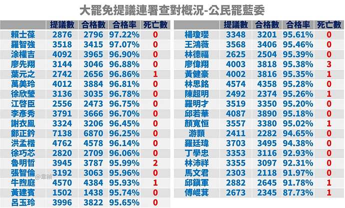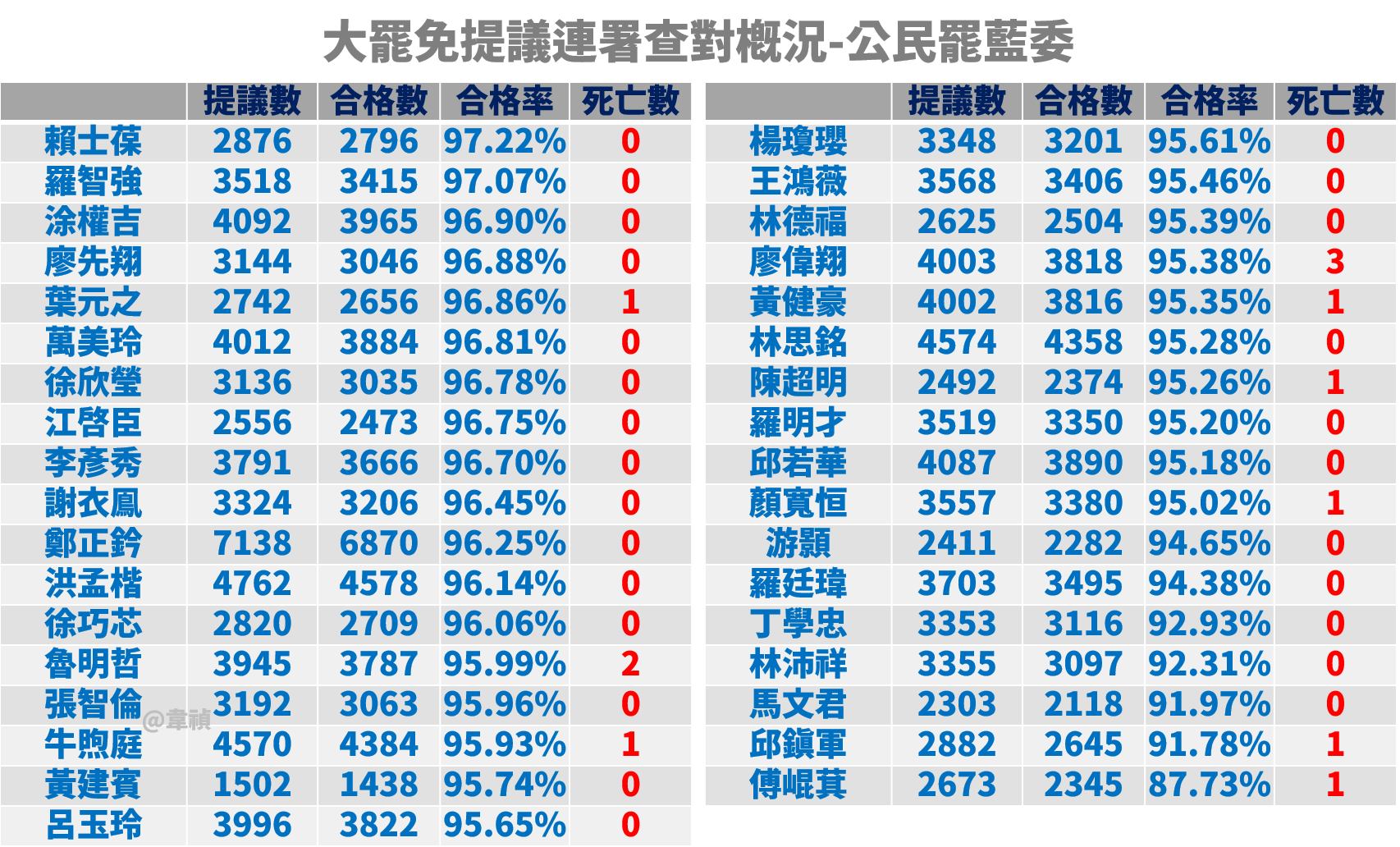 ▌大罷免提議連署查對概況 ─ 公民罷藍委