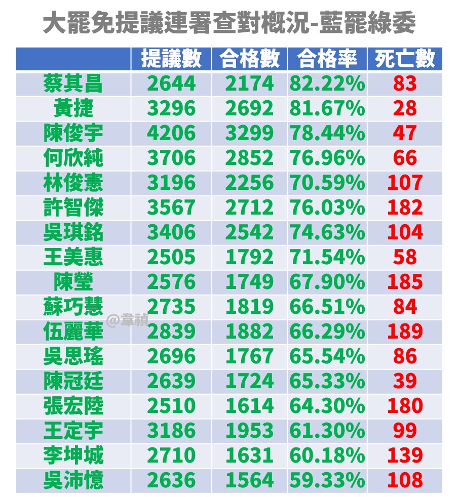 ▌大罷免提議連署查對概況 ─ 藍罷綠委