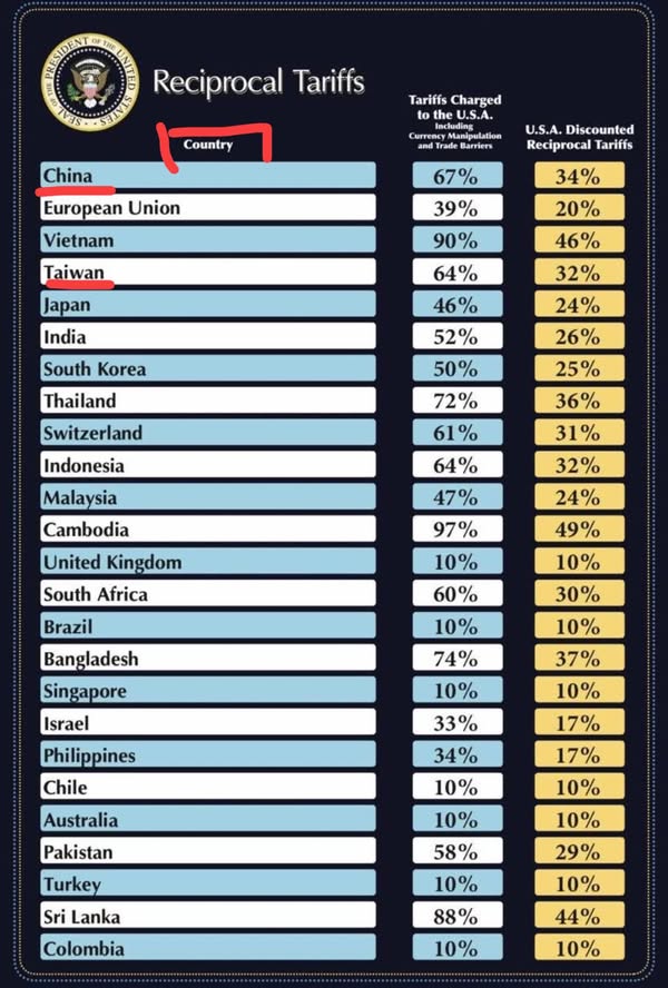 川普的對等關稅表,在「Country 」那一欄。