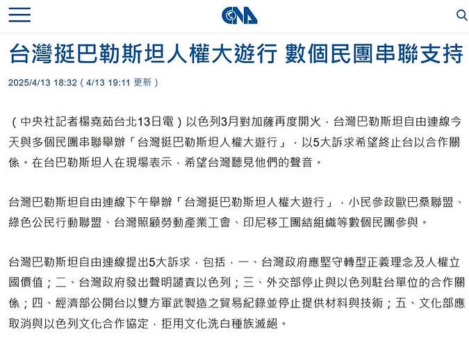 少在那邊說挺巴勒斯坦就是捍衛台灣主權、反對台灣被中國統一,沒有巴勒斯坦人會做這種宣示的。