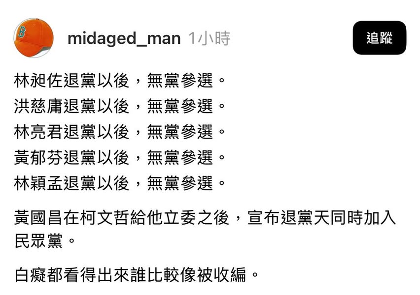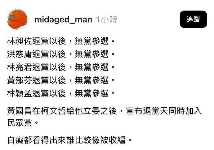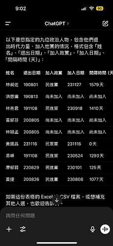 | 黃國昌 | 2023/11/16 | 民眾黨 | 2023/11/16 | 0天 |