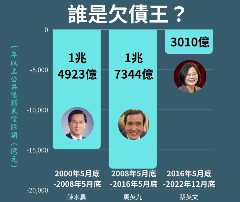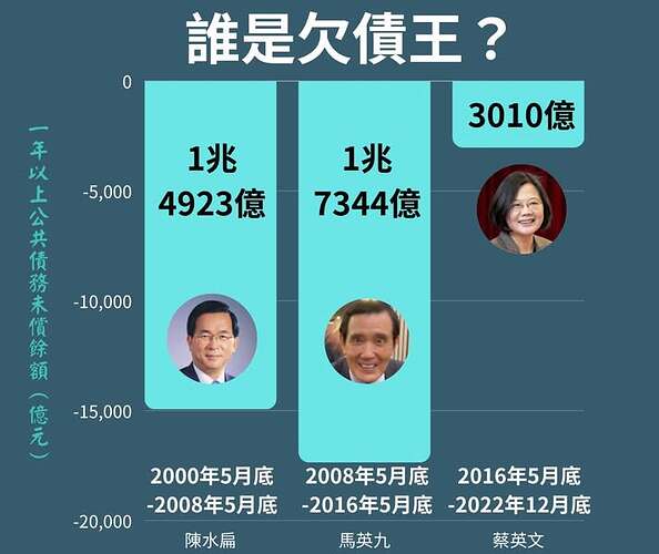 | 蔡英文 (2016.05-2022.12) | 3,010億 |