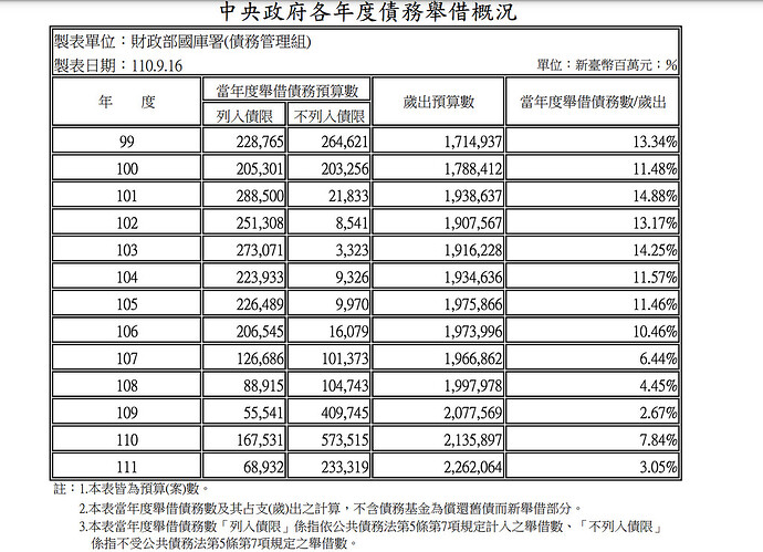 | 蔡英文卸任前 (2022年11月前) | 3.00兆元 | 增加 9000 億元(執政將近七年) |
